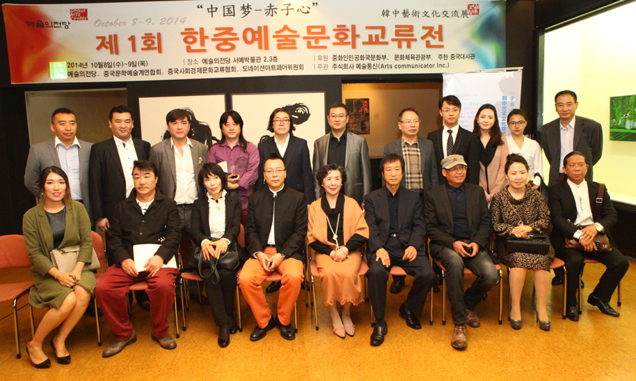 由中国社会经济文化交流协会、韩国首尔艺术殿堂主办的“中国梦•赤子心”韩中艺术文化美术展览会于2014年10月10日在韩国首尔圆满落幕。韩国新世界党金武星代表及夫人 CHOI Yang-ok女士,三星电子 SHIN joong-gyun社长、现代汽车 YOON Gab-han社长、LG电子 JUNG Do-hyun社长等共同出席。展览会从10月8日至10月10日,持续展出3天,共展出中国画家40 余幅作品。
